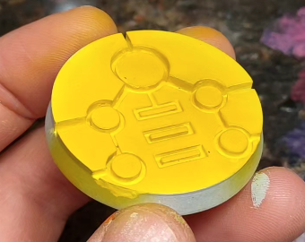 The paint we used was old and manky, so chunks got stuck in the airbrush as we were painting. This caused the airbrush to spit globs of paint out randomly, speckling the base. Luckily for our painter, this was the final layer and actually added to the illusion of cinders and ash on top of a molten core. If it was a different colour on an actual model, this would have ruined it! Let this be a lesson - always test your paints before committing to the mini, and avoid old manky colours in your airbrush.